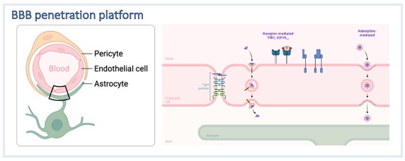 Our research focuses on developing delivery platforms that improve the brain penetration and delivery efficiency of antibody-based therapeutics across the blood–brain barrier (BBB). Furthermore, we aim to design safer CNS delivery systems that mitigate treatment-related adverse events, including amyloid-related imaging abnormalities (ARIA), commonly observed in anti-amyloid therapies.